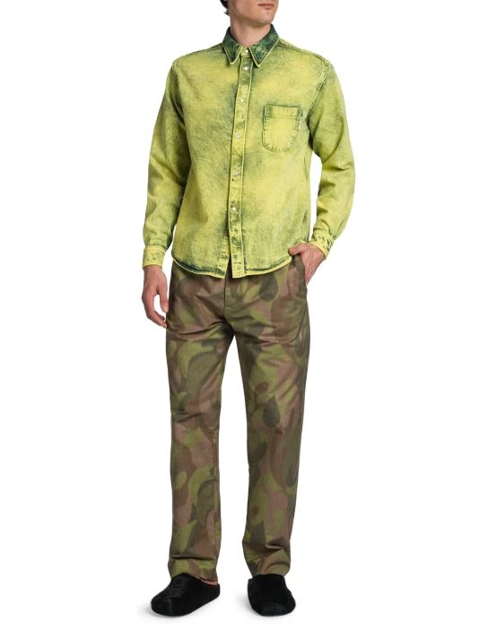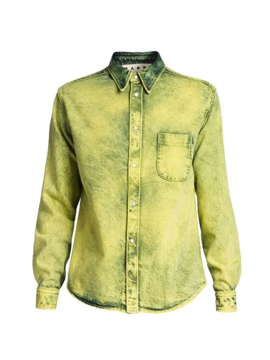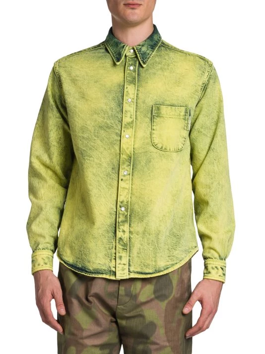 This button-front cotton shirt is enhanced with an acid wash effect.