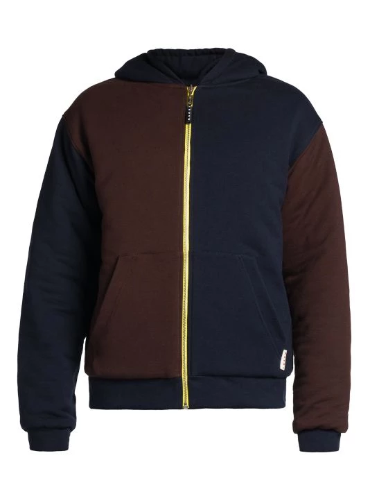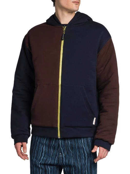 Creative director Francesco Risso kept romance in mind as he hand-developed a collection heavily influenced by cheerful self expression and classic haute couture. For Marni, Risso crafted a line of sun-dried dyed garments, including jackets and sweatpants, all adorned with flowers. This reversible sweatshirt features a hood, split kangaroo pocket, and long sleeves with banded cuffs.
