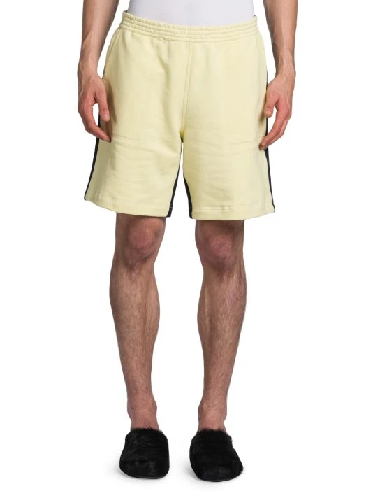 These cotton-knit Bermuda shorts feature a colorblocked design, contrast stitch details, and an embroidered logo.
