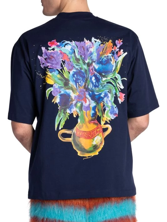 A painterly floral graphic adorns the back of this boxy-fit cotton jersey tee.