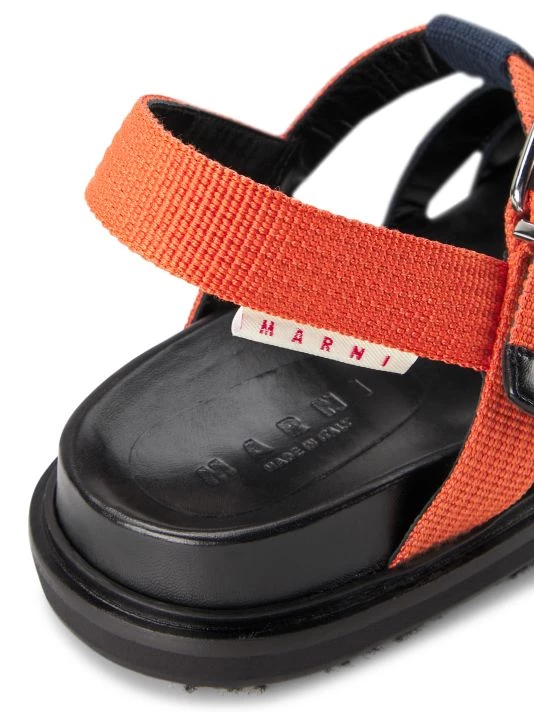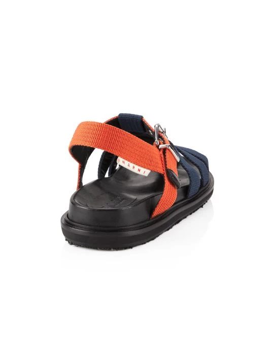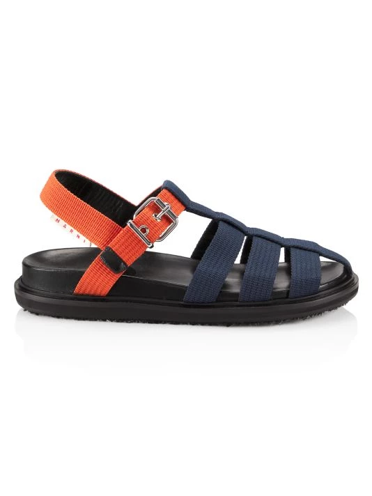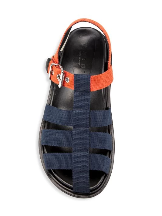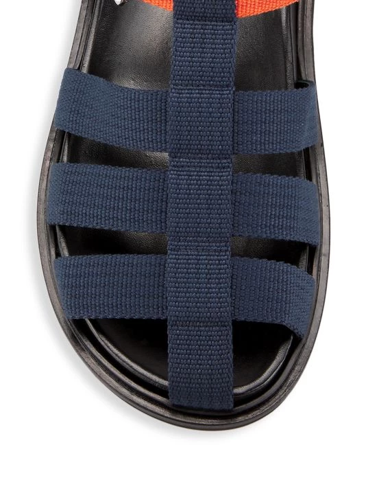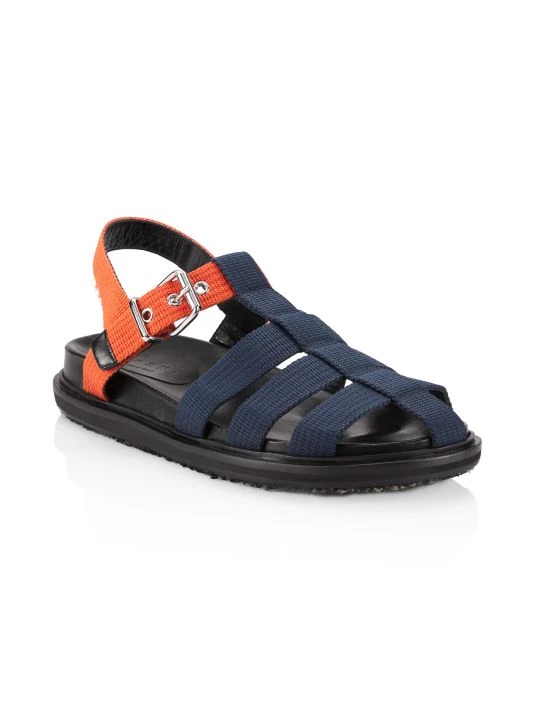 These Fisherman sandals feature contrasting woven straps and buckle closure at the ankle.