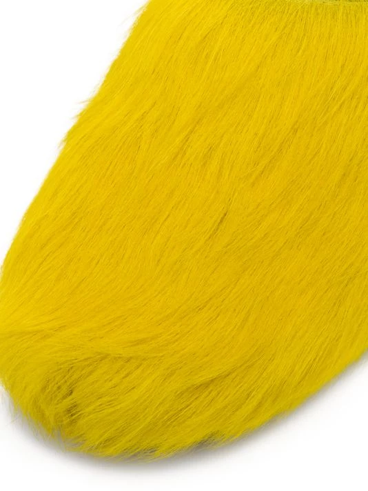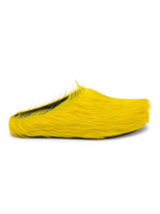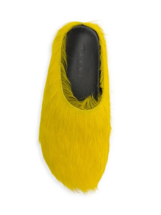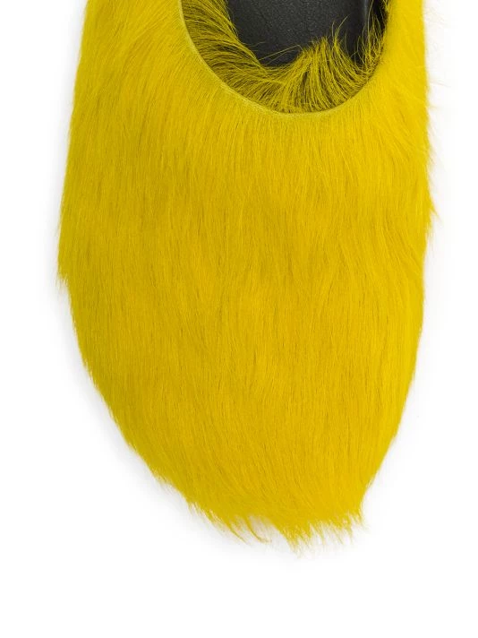 Crafted from long-hair calfskin, these vibrant mules have a wearable cushioned silhouette.