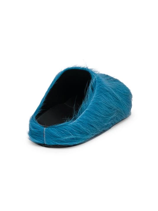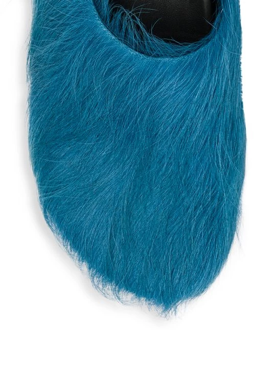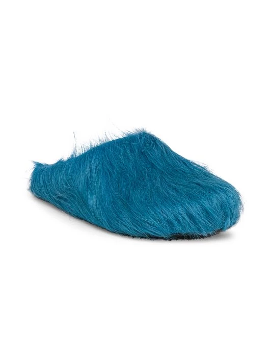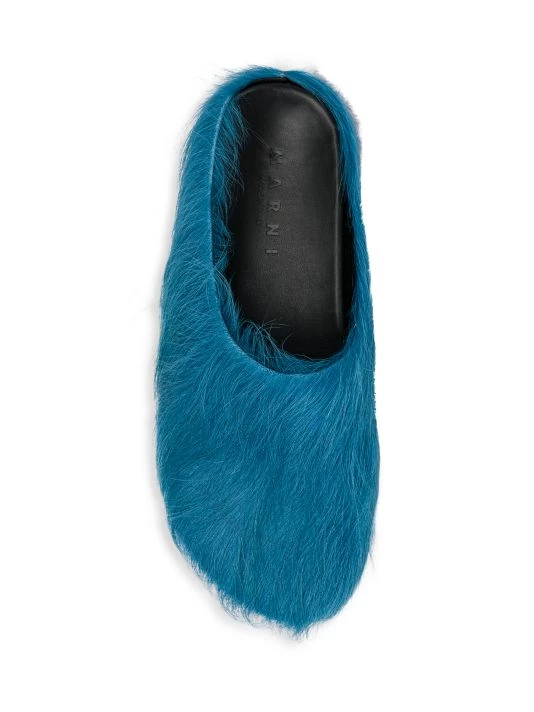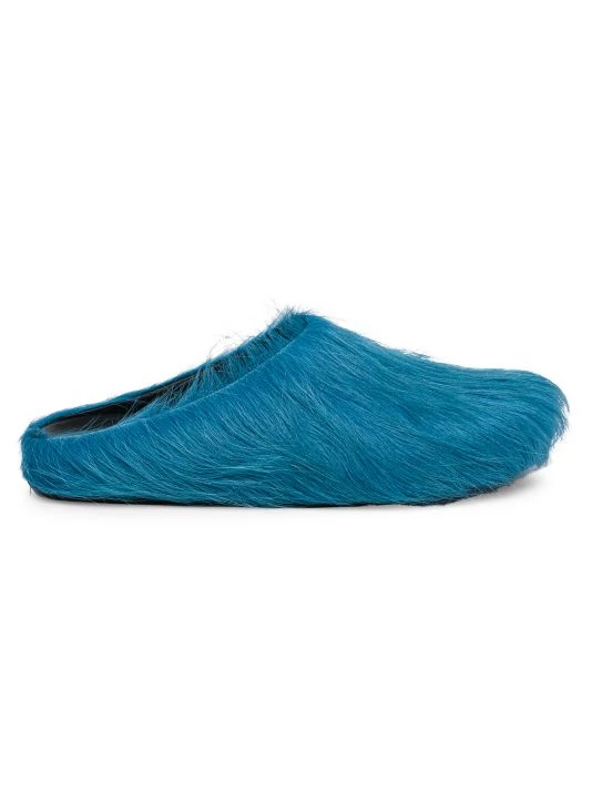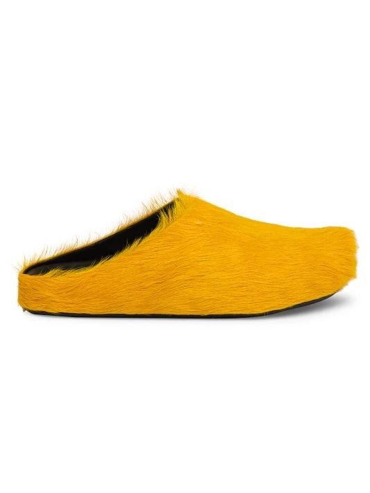These eclectic slides by Marni are adorned with vibrant calf hair.