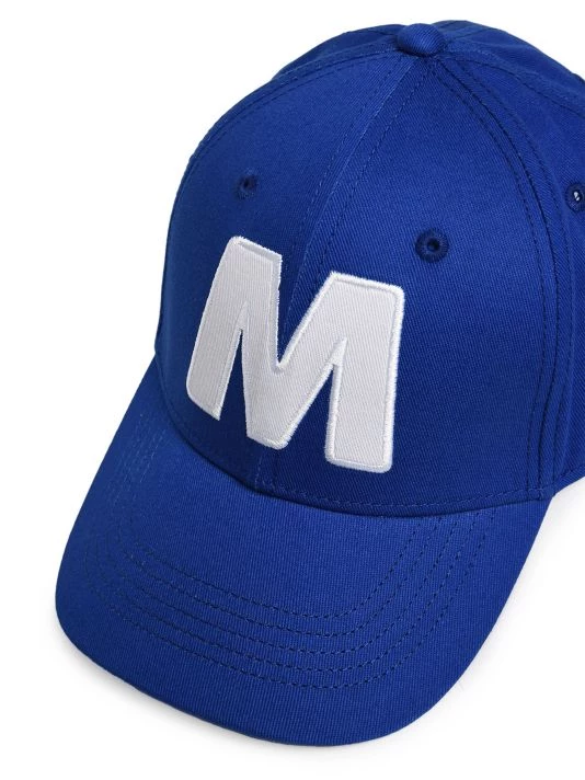 This six-panel baseball-style cap is embroidered with the logo “M” on the front.