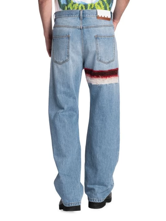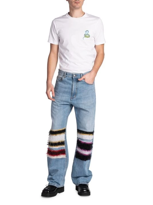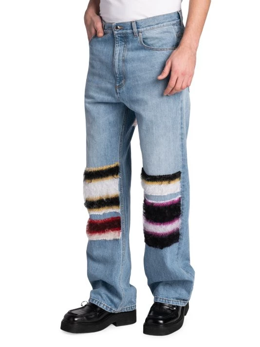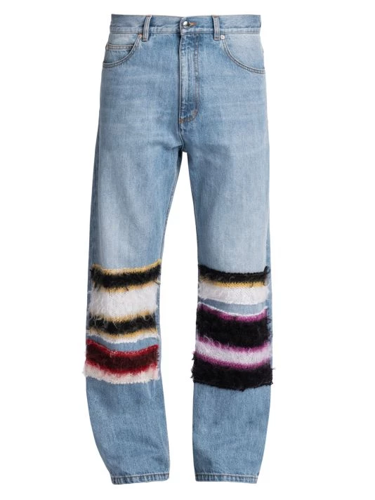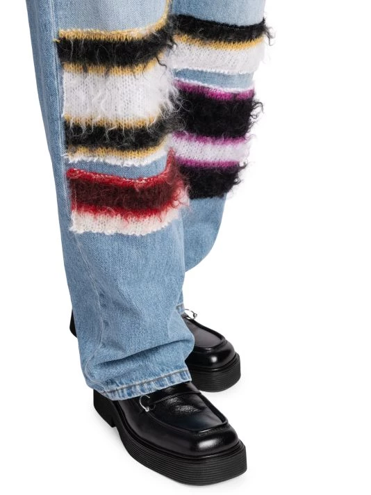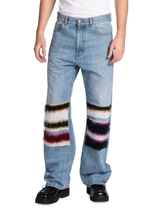 Striped knit panels lend grunge-inspired appeal to these wide-leg jeans.