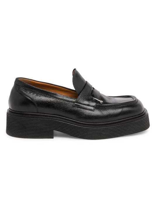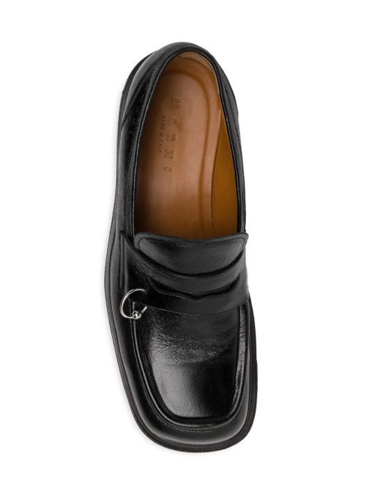 Crafted of leather, these platform loafers by Marni feature a square toe accented with an industrial metal ring.