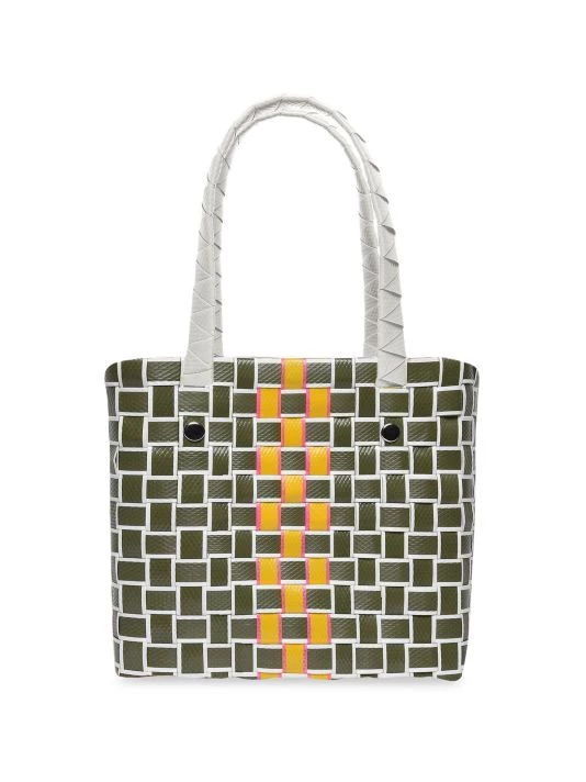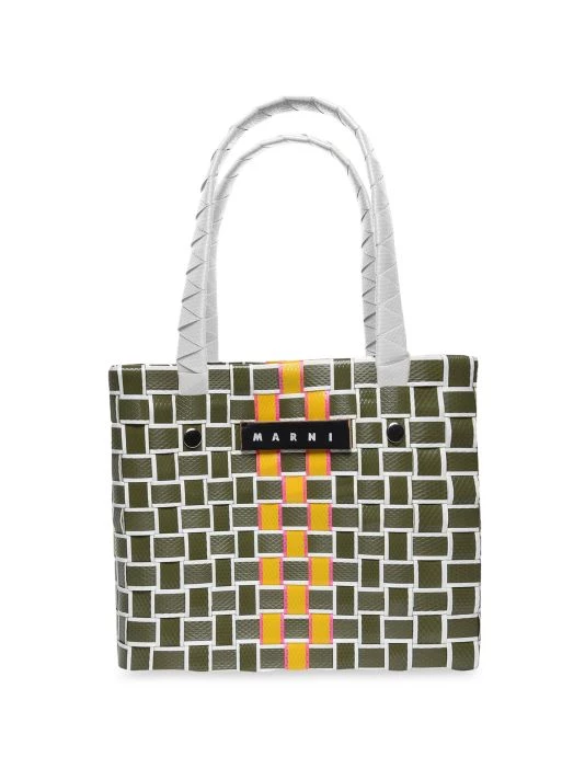 Designed with a woven texture, this graphic basket bag features a contrast logo patch across the front.