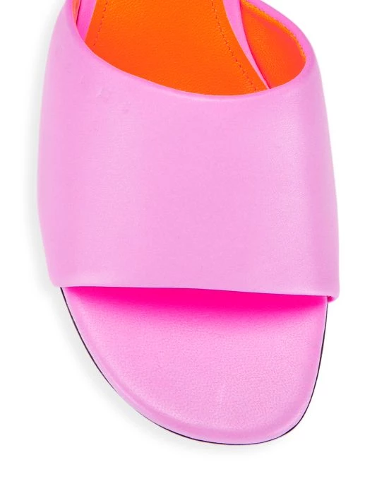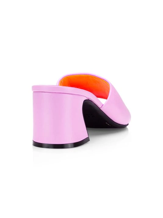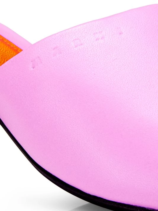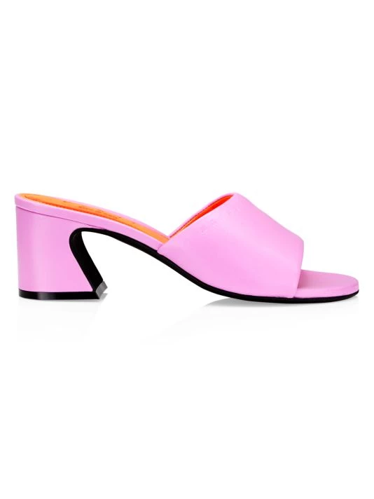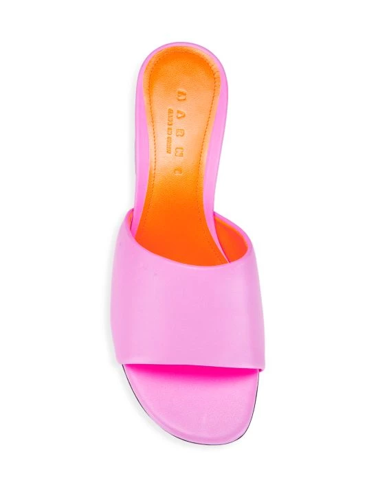 Characterized by an angled block heel, Marni’s mules are made in Italy of padded leather with an understated logo at the vamp.