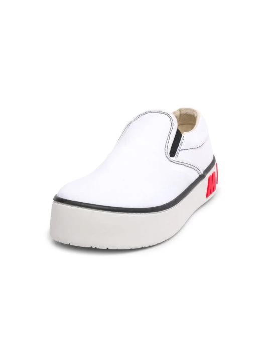 The Slip-On Paw Sneakers by Marni feature crisp cotton uppers accented by exciting signature logos embossed on the back of the heels.