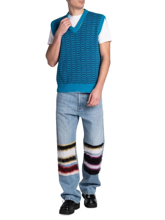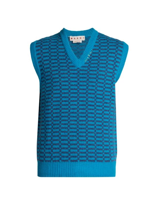 Two-tone stitched checks lend graphic style to this wool sweater vest.