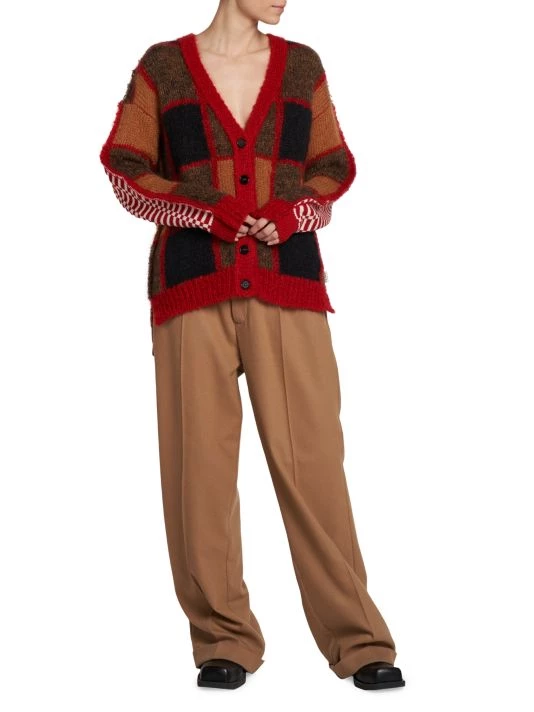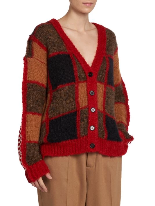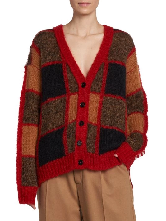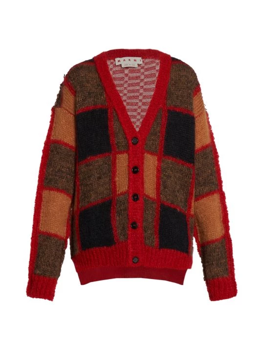 Marni’s cardigan is knit from a soft virgin-wool blend. Made in Italy, this cozy style features a checked pattern at the front and stripes at the back.
