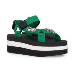 Marni Crystal-Emellished Flatform Sandals Garden Green