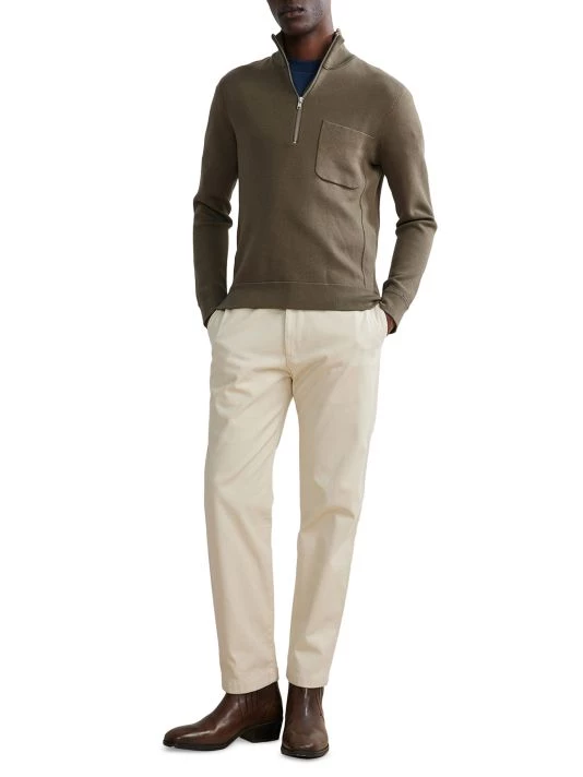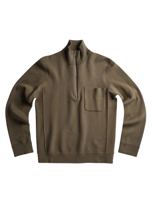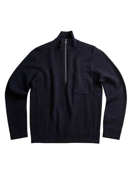 Focusing on versatility and functionality, NN07 created what they label an Urban Collection, inspired by three different stories—Commuter, Denim, and Weekend. Expertly crafted from fabrics like cotton, leather, and nylon, “Commuter” includes easy-to-layer essentials, “Denim” is made up of oversized knitwear, and “Weekend” focuses on nostalgic Scandinavian-styled outerwear. This mockneck sweater features a quarter-zip closure and a patch pocket on the chest.