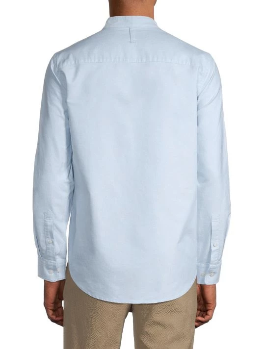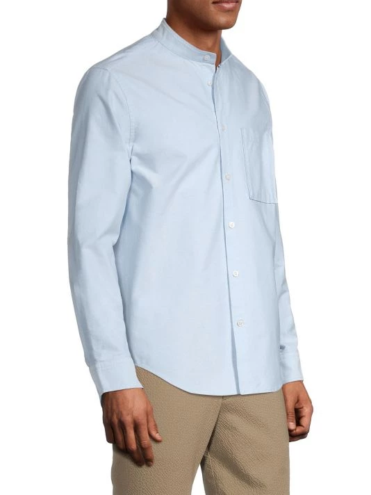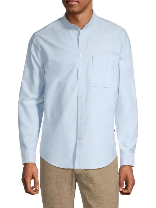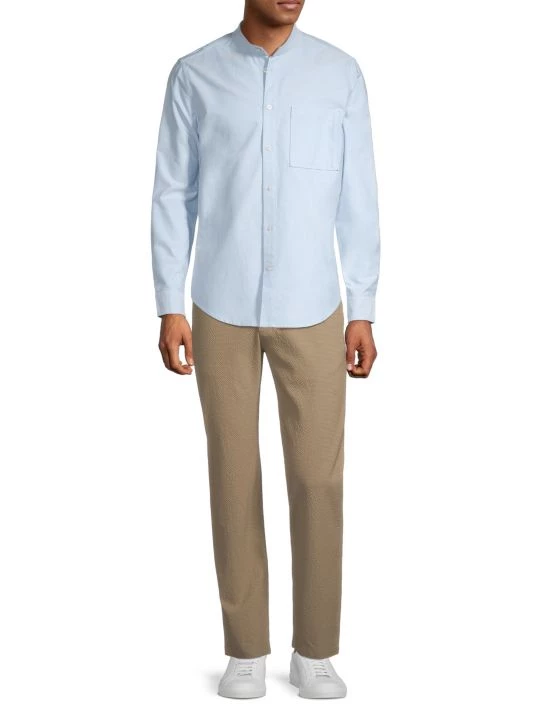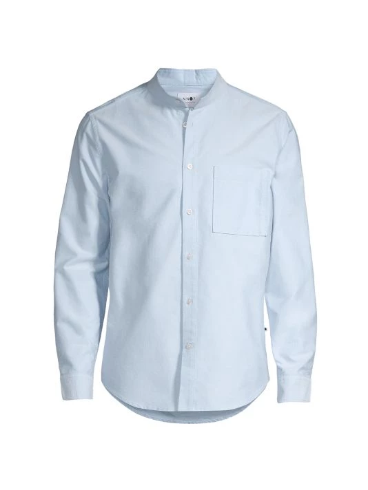 NN07, an abbreviation for no nationality and the founding year of the brand, is named for its open-minded, no-borders approach to fashion. The Copenhagen-based label produces exceptionally crafted, versatile essentials, from warm knits and lightweight T-shirts to tailored trousers and casual denim. From The Commuter, The Weekender, NN07 Jeans Collection, this long-sleeve shirt is crafted of ultra-soft cotton with a band collar and classic chest patch pocket.