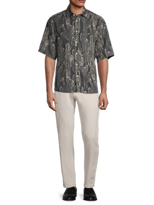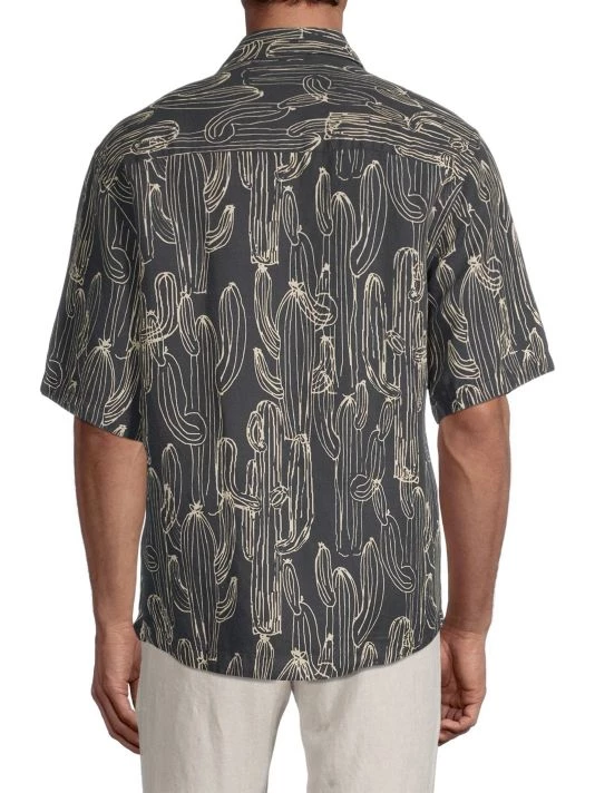 From the High Summer 2022 Collection. Cut for a boxy, oversized fit, this ultra-breathable shirt is crafted of a lyocell-linen blend showcasing an all-over cactus print.