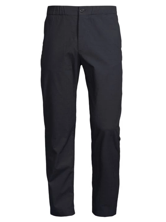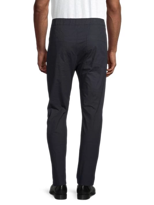 From the High Summer Collection. Crafted of Italian stretch cotton, these ultra-comfortable tapered trousers feature a hidden drawstring waist and workwear-inspired back patch pockets.