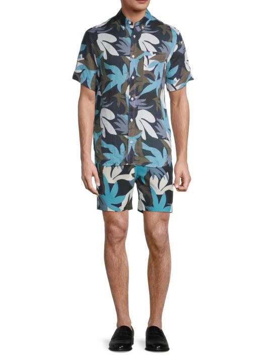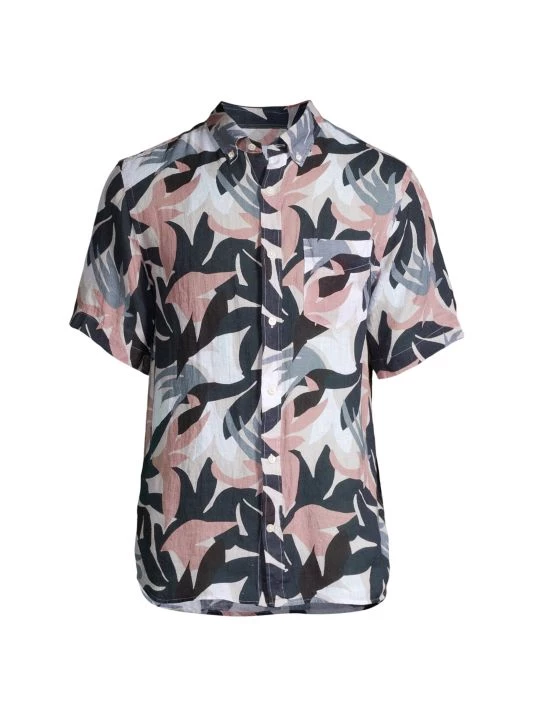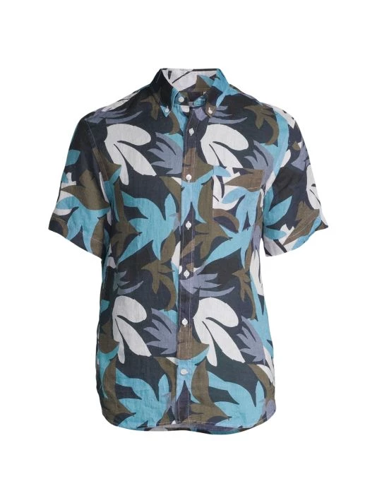 From the High Summer Collection. Crafted of ultra-soft drapey linen, this button-down shirt features a lively all-over print.