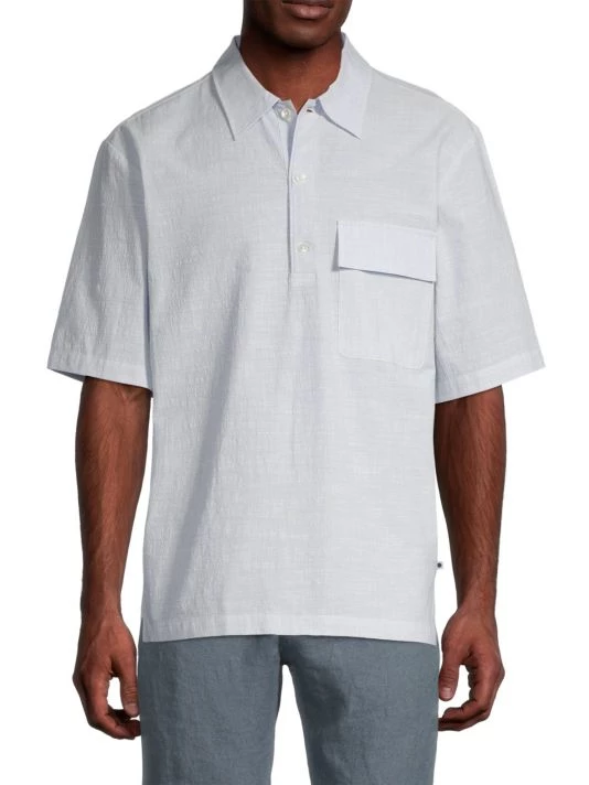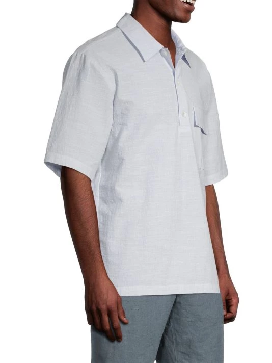From the High Summer 2022 Collection. Crafted of breathable summer cotton, this pullover-style shirt is designed with three mother of pearl buttons on a half placket and a casual flap pocket.