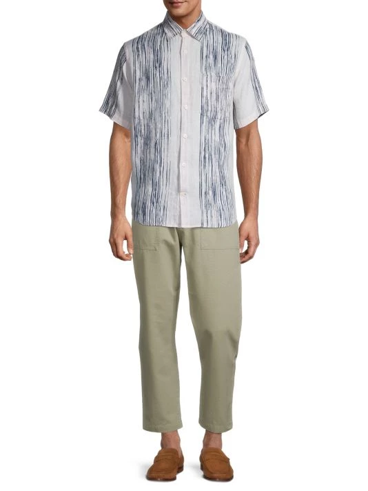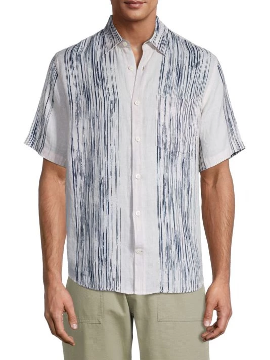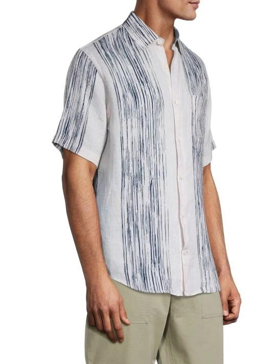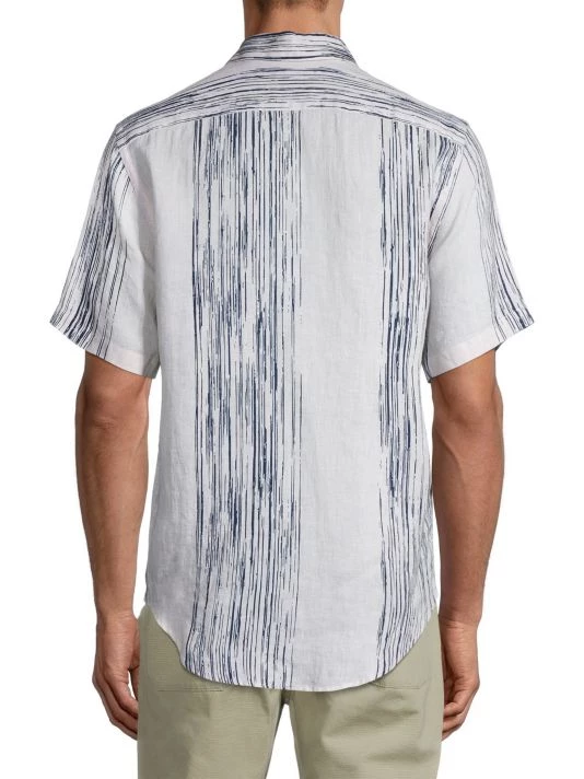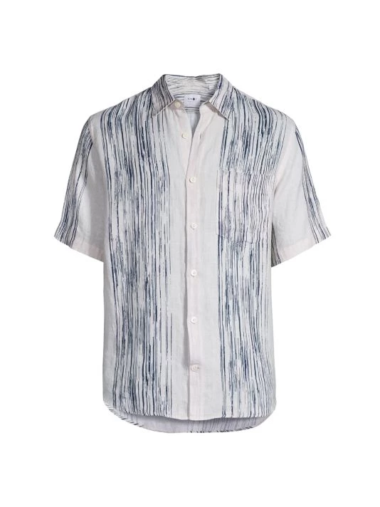 NN07, an abbreviation for no nationality and the founding year of the brand, is named for its open-minded, no-borders approach to fashion. The Copenhagen-based label produces exceptionally crafted, versatile essentials, from warm knits and lightweight T-shirts to tailored trousers and casual denim. From The Commuter, The Weekender, NN07 Jeans Collection, this short-sleeve shirt is made from linen and flaunts a contrast stripe design.