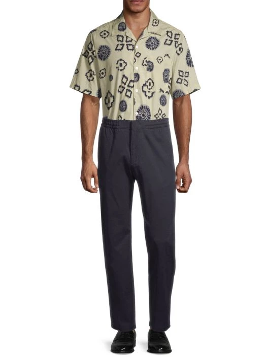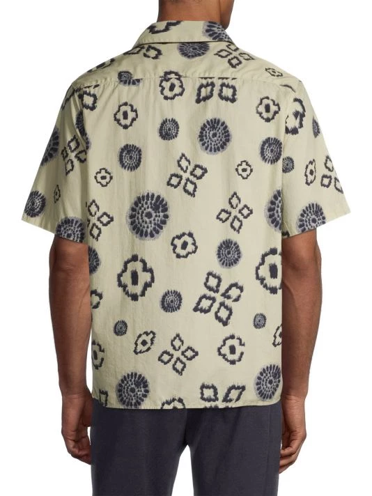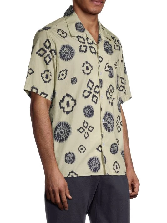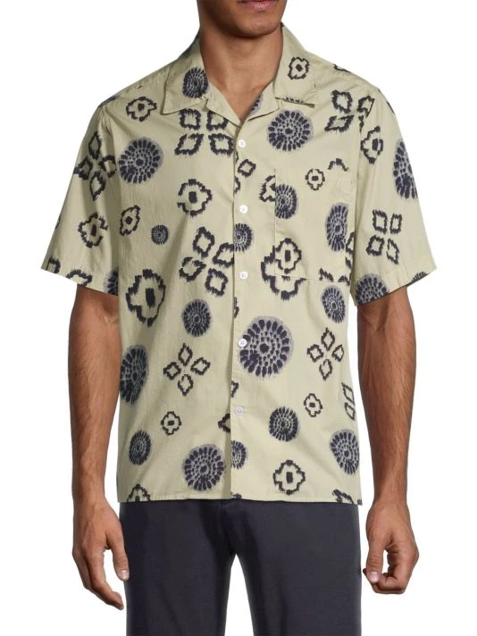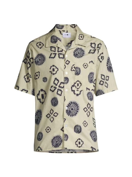 An abstract geometric print decorates NN07’s casual cotton shirt.